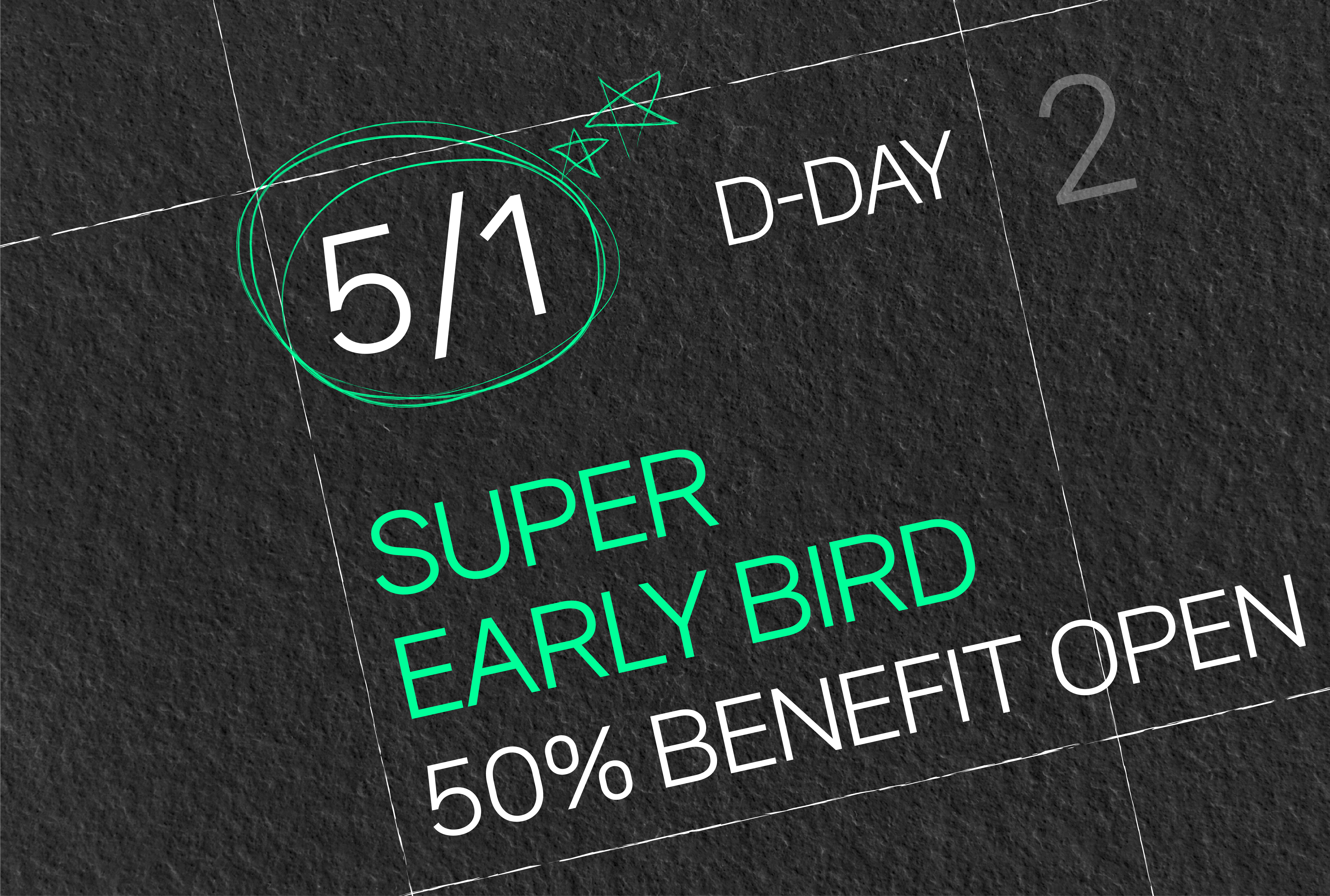 Up to 50% off, but only during the Super Early Bird period